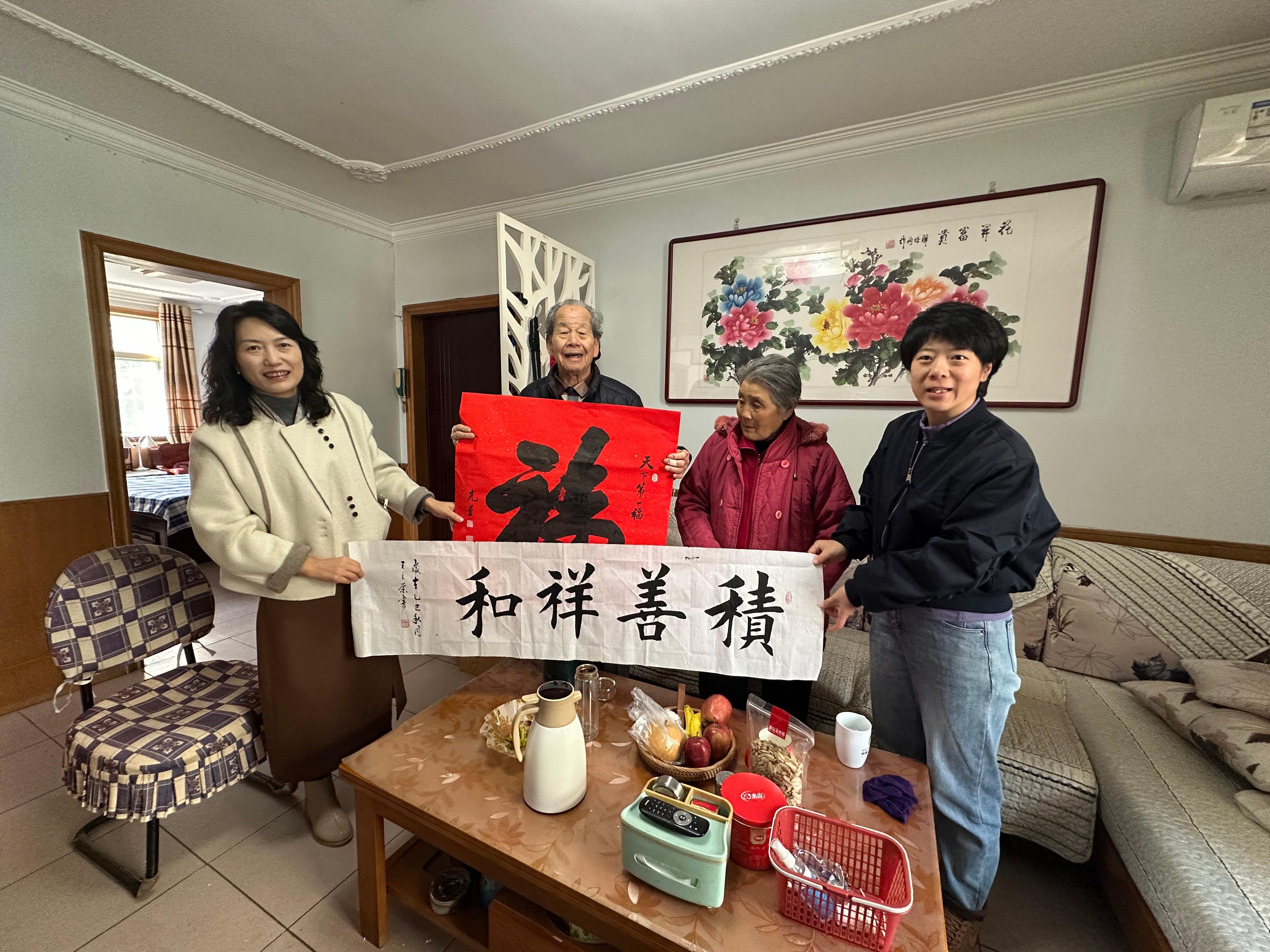 重阳有敬老感恩传统,活动最后,社区党委书记田红带领工作人员前往退休老党员家中,送上饱含重阳祝福的“福”字,与老党员拉家常、话重阳,关切询问生活与身体状况,让敬老爱老美德在社区进一步传递。