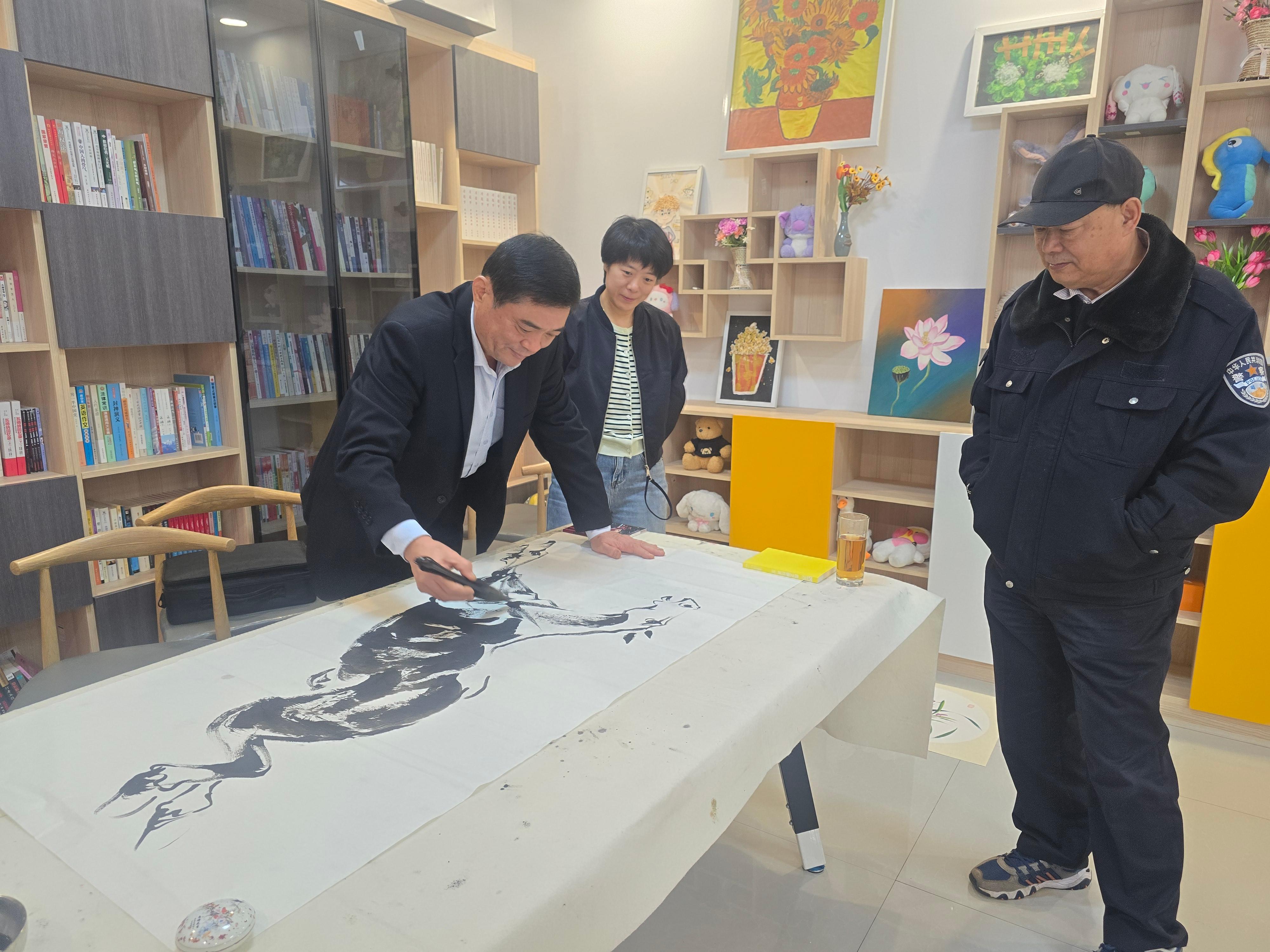社区书画爱好者也积极参与,拿出习作向老师请教笔法技巧。老师们耐心指导,从运笔力度、色彩搭配到构图布局、意境营造,分享经验。现场时而欣赏佳作,时而交流心得,笔墨间满是对传统文化的热爱,也传递着邻里温情。活动中,老师们还将现场创作的书画作品赠予社区老年代表,老人们纷纷表示活动既学知识又感到温暖,十分有意义。