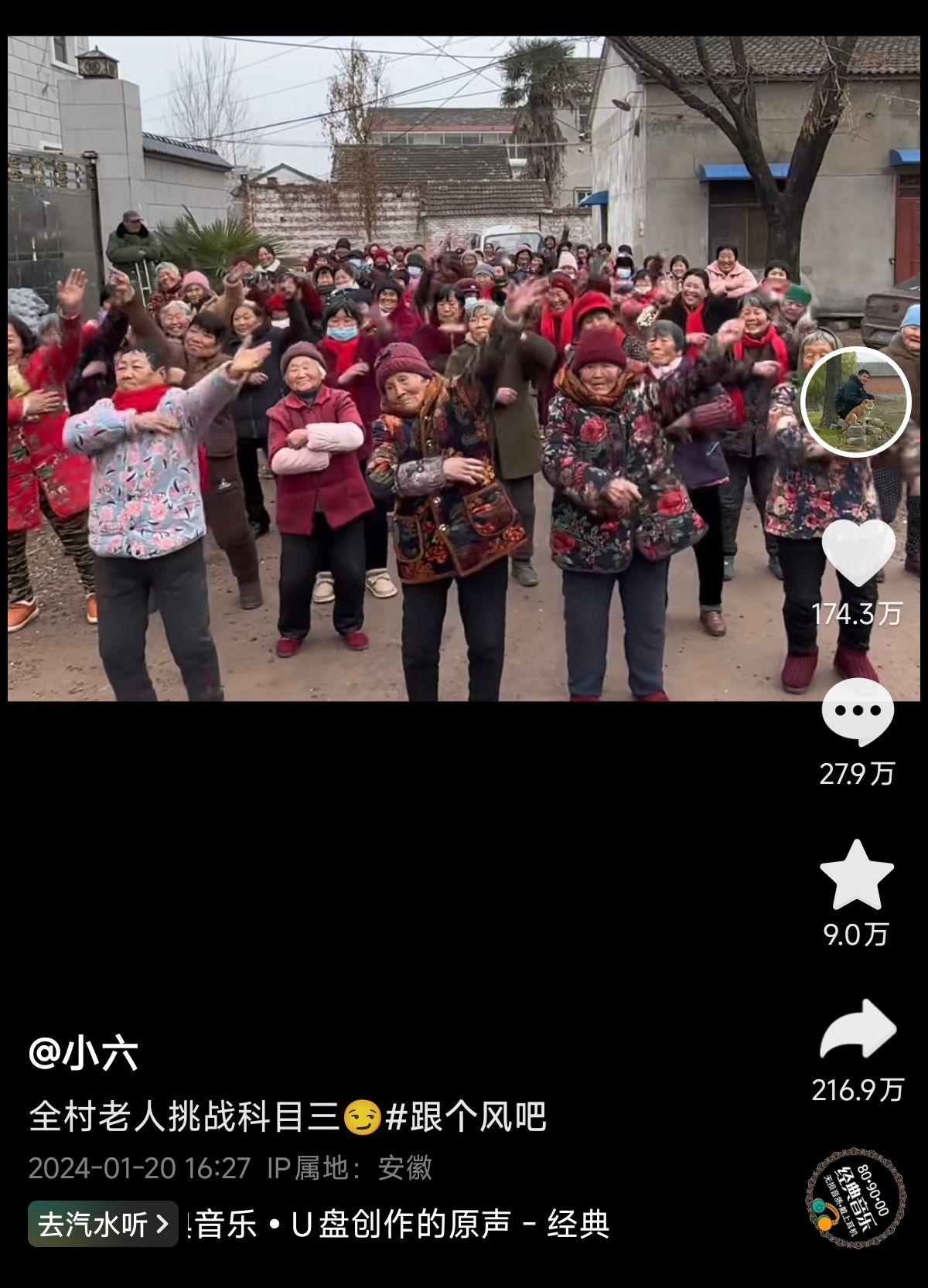 他开始更频繁地组织、陪伴老人。如何让他们的生活更有趣?他想到了当时正火爆全网的“科目三”舞蹈,于是拍下数十位老人一起跳“科目三”的视频。这条充满反差感与生命力的视频瞬间引爆网络。
