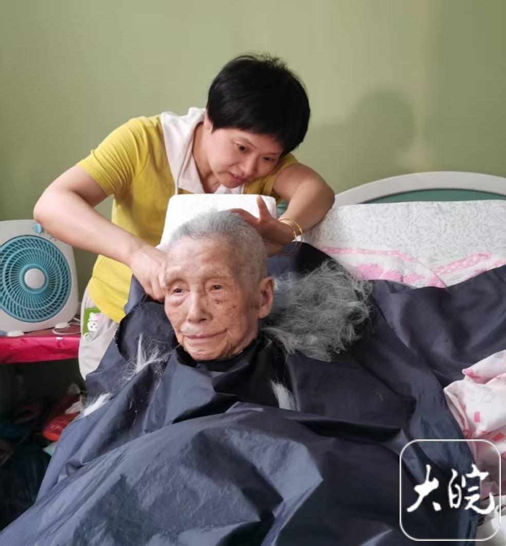 大皖新闻讯 农历九月初九重阳节,是登高敬老的传统佳节。10 月 29 日,安庆市迎江区宜城路街道钱牌楼社区工作人员走进曙光苑景小区,探望 100 多岁的章恕琴老人。记者随同社区人员一起,探寻这位世纪老人的长寿秘诀的同时,更见证了 78 岁儿子汪大武夫妇数年如一日的悉心照料。汪大武说:“一家人其乐融融,能随时喊声‘妈’”,便是世间最珍贵的幸福。