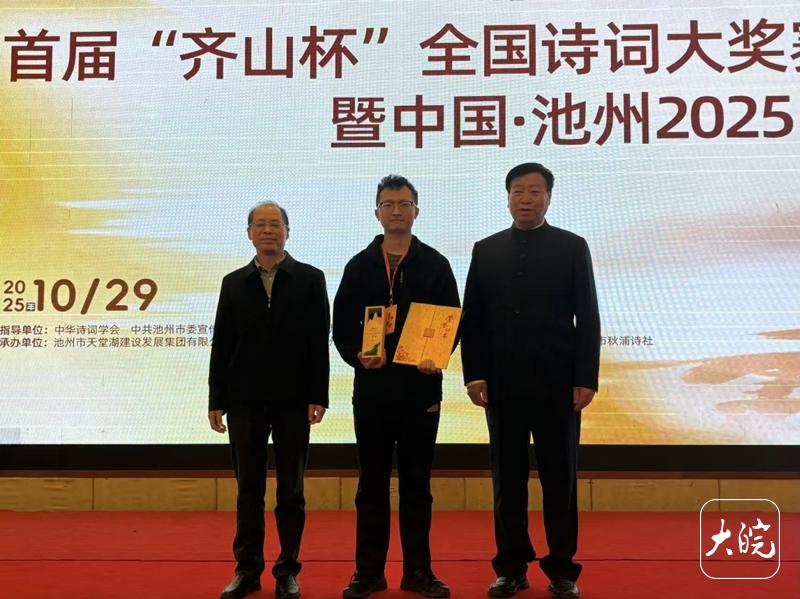 据介绍,本届诗词大赛虽属首创,却吸引了全国1600多位诗人参赛,参赛作品达2000余首。投稿者中,既有93岁诗翁,也有10岁诗童;既有诗坛宿将,也有普通爱好者。作品风格各异,笔触生动、情感真挚,充分展现了当代诗人承续传统、执笔时代的创作活力。经严格评审,19位作者脱颖而出,分获各级奖项。