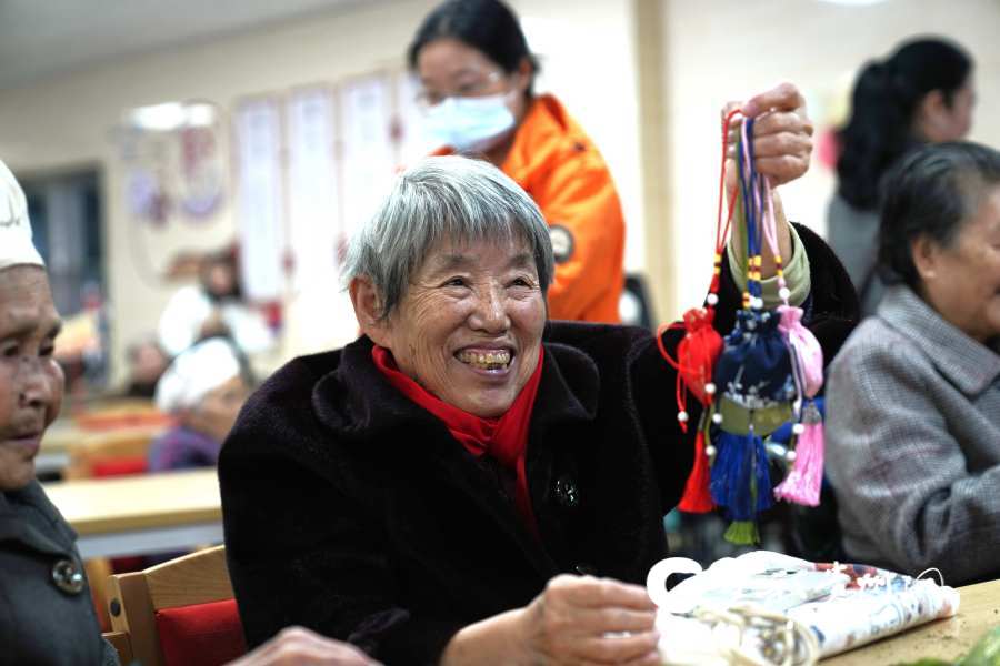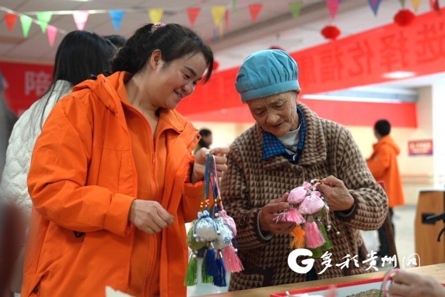 “今早跟爸爸一起包香包、打糍粑,还吃了团圆饭。”务川仡佬族苗族自治县仡福康养中心老人子女邹燕满脸喜悦地说,“爸爸车上的香包掉了,我重新给他挂了一个,还带了两个回家,每次看到都很有意义。”