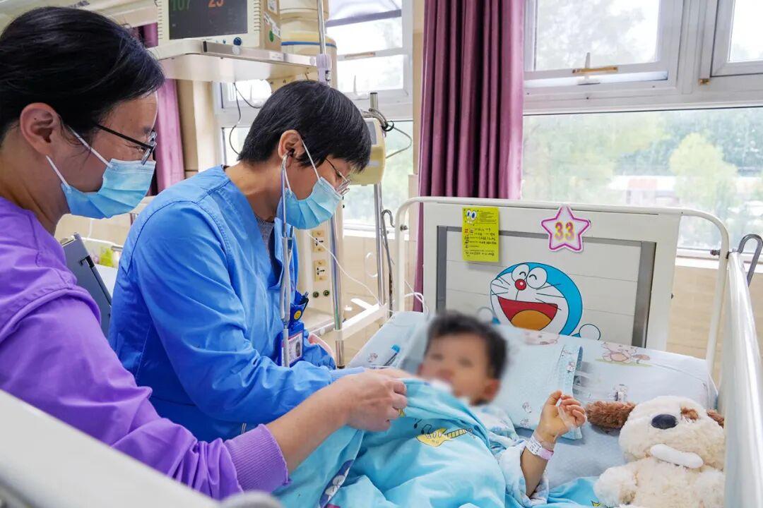 为了减少孩子的恐惧,墙角的柜子里摆满了绘本和毛绒玩具。护士们除了完成治疗护理,还成了孩子们的“临时妈妈”:给不会说话的婴儿换尿布、喂奶,给懂事的大孩子讲故事、唱儿歌,甚至会记住每个孩子的喜好——3岁的妞妞喜欢粉色,护士就找来了粉色的小被子;4岁的浩浩爱听汽车故事,医生查房时会特意跟他聊几句“消防车”。有一次,一名5岁男孩因为想念妈妈偷偷哭,护士小李坐在床边,抱着他一起拼拼图,直到孩子脸上露出笑容。