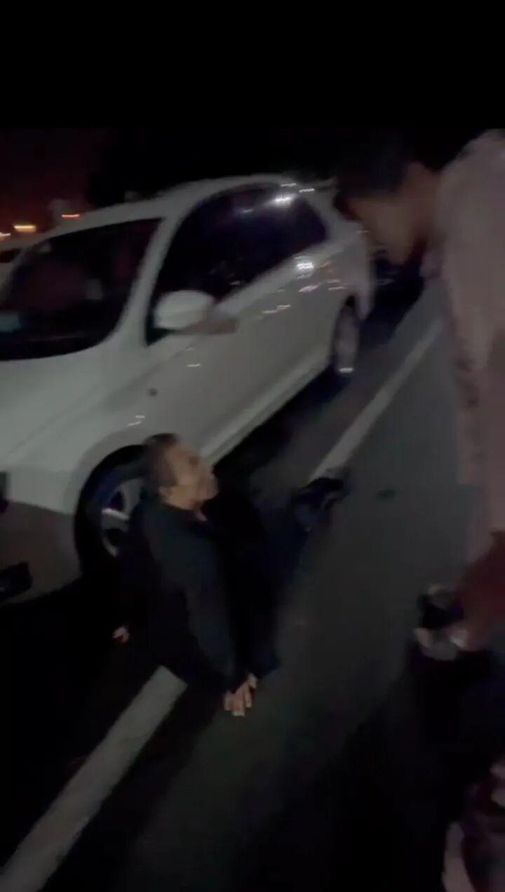 她注意到一位老人瘫坐在湿漉漉的路边