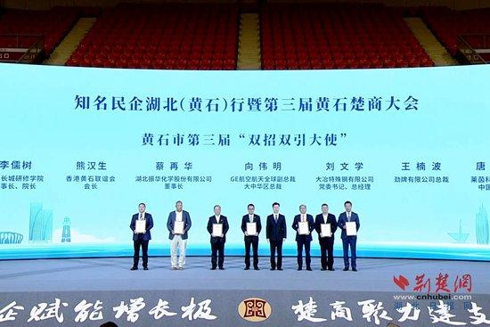大会还授予上海市黄石商会等4个异地黄石商会助力家乡发展突出贡献奖,并聘请向伟明、蔡再华等7位企业家为黄石第三届“双招双引”大使。