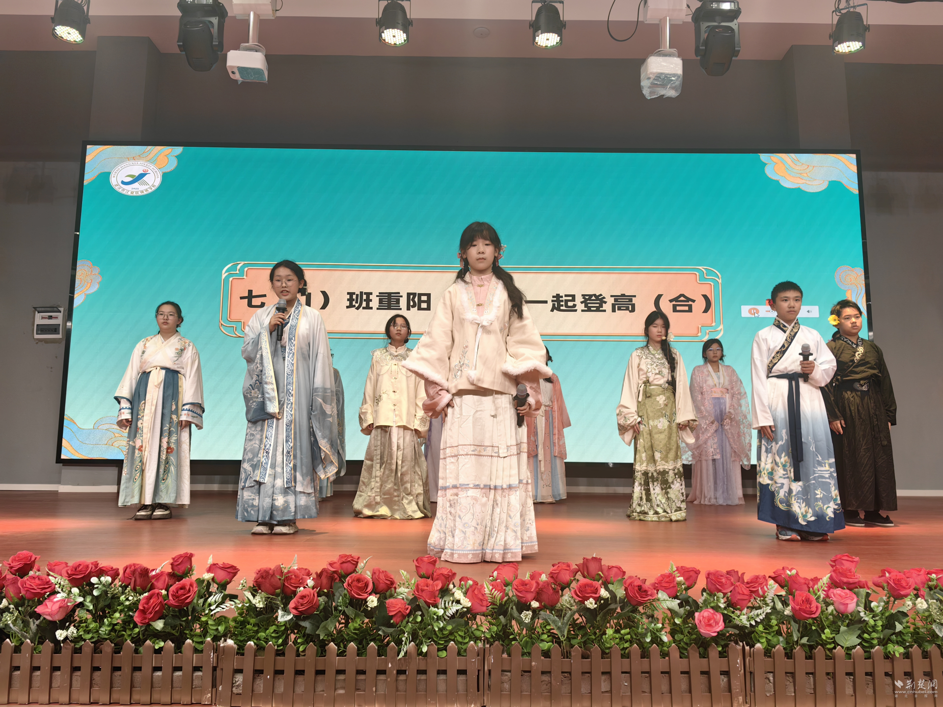 活动月尾声,“雅韵诵重阳,经典咏流传”重阳节经典诵读活动为系列教育画上句号。七、八年级学生参与了此次在学校报告厅举办的诗会,活动分为“独颂华韵”单人朗诵和“雅集共振”集体诵读两个环节。学生们朗诵了《九月九日忆山东兄弟》等经典诗篇,以及原创或精选的敬老文章,评分标准涵盖主题契合、语言表达、形式创意和台风形象。