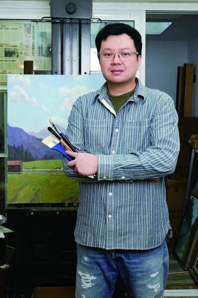 画室里弥漫着松节油的气息,画架前翁乙超正俯身调色。他先是退后半步,眯眼打量画布,随即上前,用笔头蘸满油彩,在画布上重重扫出几笔……