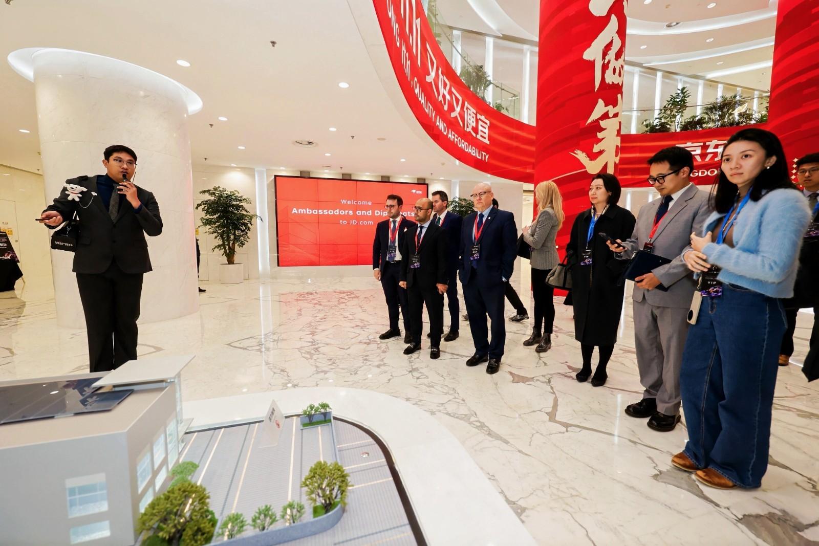 人民日报海外网总经理徐蕾致辞表示,“我在中国当大使”是人民日报海外网策划的多语种原创采访栏目,是央媒首次集中、持续推出有关驻华大使的融媒报道,已经走进121国驻华使馆,采访179位驻华大使,邀请来自28个国家的近50位驻华使节走进重庆、河北、四川、浙江、广东、上海等省市以及西藏自治区。“驻华使节中国行﹒走进京东”,不仅是一次企业参访,更是一次共促发展的旅程。海外网愿发挥桥梁作用,与各国驻华使节、国际机构、友好企业携手同行,搭建更多沟通平台,讲好中国故事,传播世界声音,汇聚合作共赢的正能量。