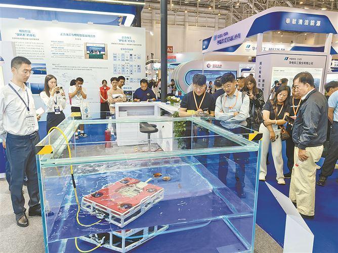 展览会现场,“智能水下捕捞机器人”吸引众多嘉宾关注。