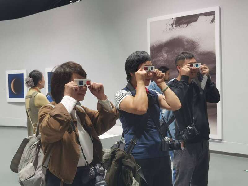 2025丽水摄影节,观众透过特殊效果滤镜观看摄影作品。中青报·中青网记者 蒋雨彤/摄