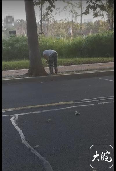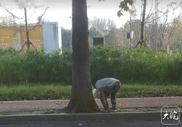 随后,该人士还发来一段市民拍到的视频,从该视频里可以看到,一名身穿短袖衫的男子,弓着腰,拿着一把小锤子钉钉子的过程,还不时喝一口瓶装水,对着树根喷去。至于该男子的这种怪异行为,目前尚无合理的解释。