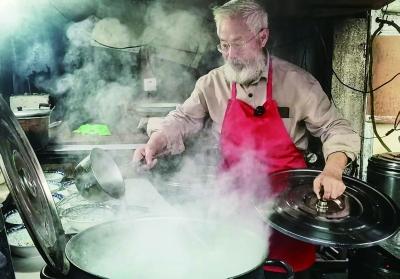 “又见炊烟升起,暮色罩大地……”老尹一边收拾碗碟,一边唱起了这首歌。“我喜欢这首歌,更喜欢柴火升起处的小馄饨。”他笑说,“我有一个心愿,想把这家店做成百年老店,还有60年,我得加油!”