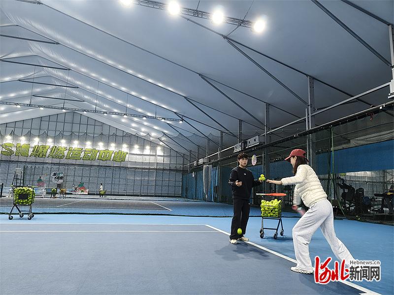 11月6日,市民(右)在廊坊SK爆燃运动中心学习网球。 河北日报记者 宋平摄