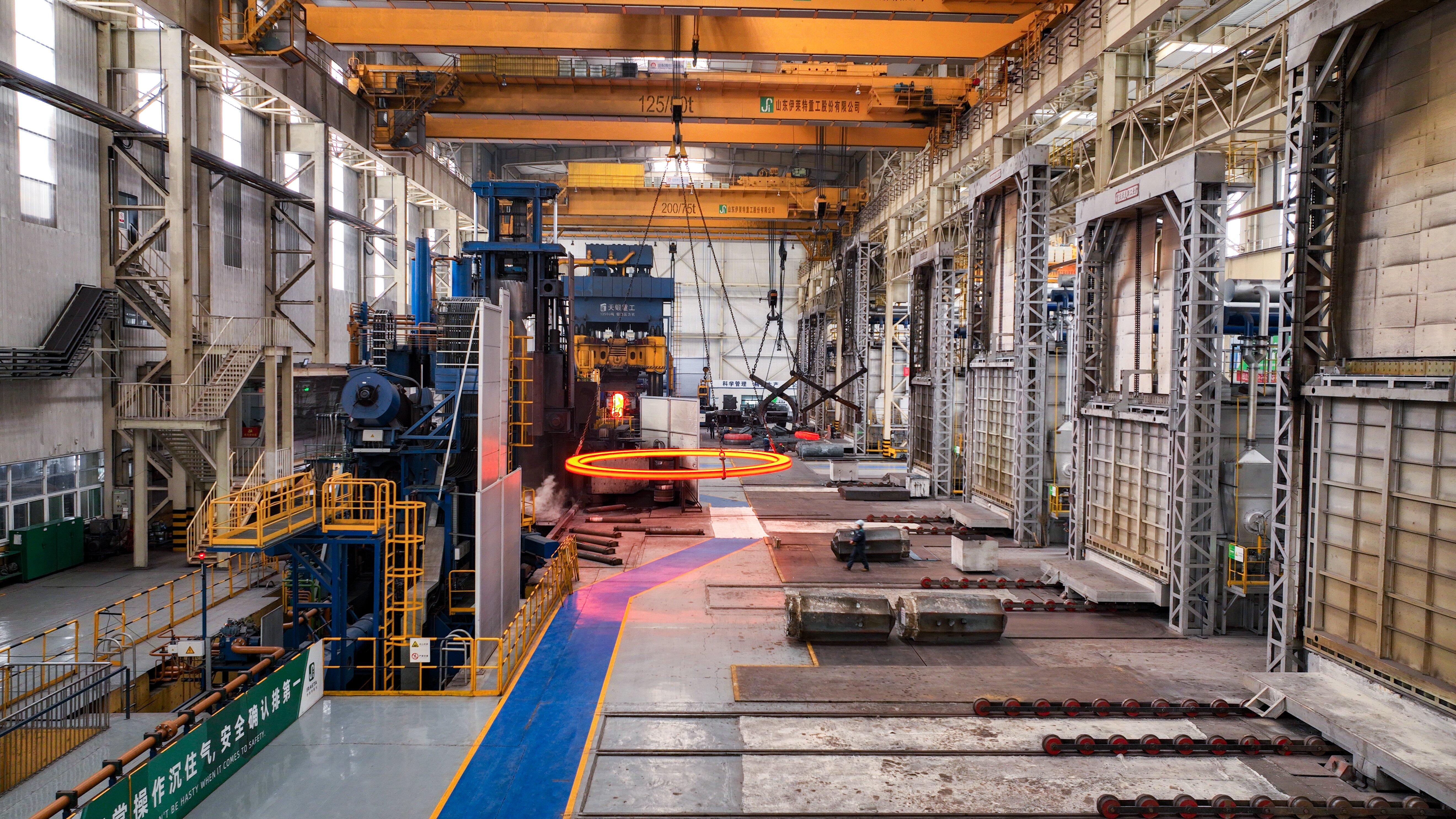 9月25日,伴随着一声沉稳而有力的机械启动声,2.2万吨全球最大自由锻压机正式开启热试;不远处,直径22m的全球最大轧环机正有序安装……一组组“钢铁巨兽”巍然矗立,庞大的机身尽显工业制造的硬核气场。