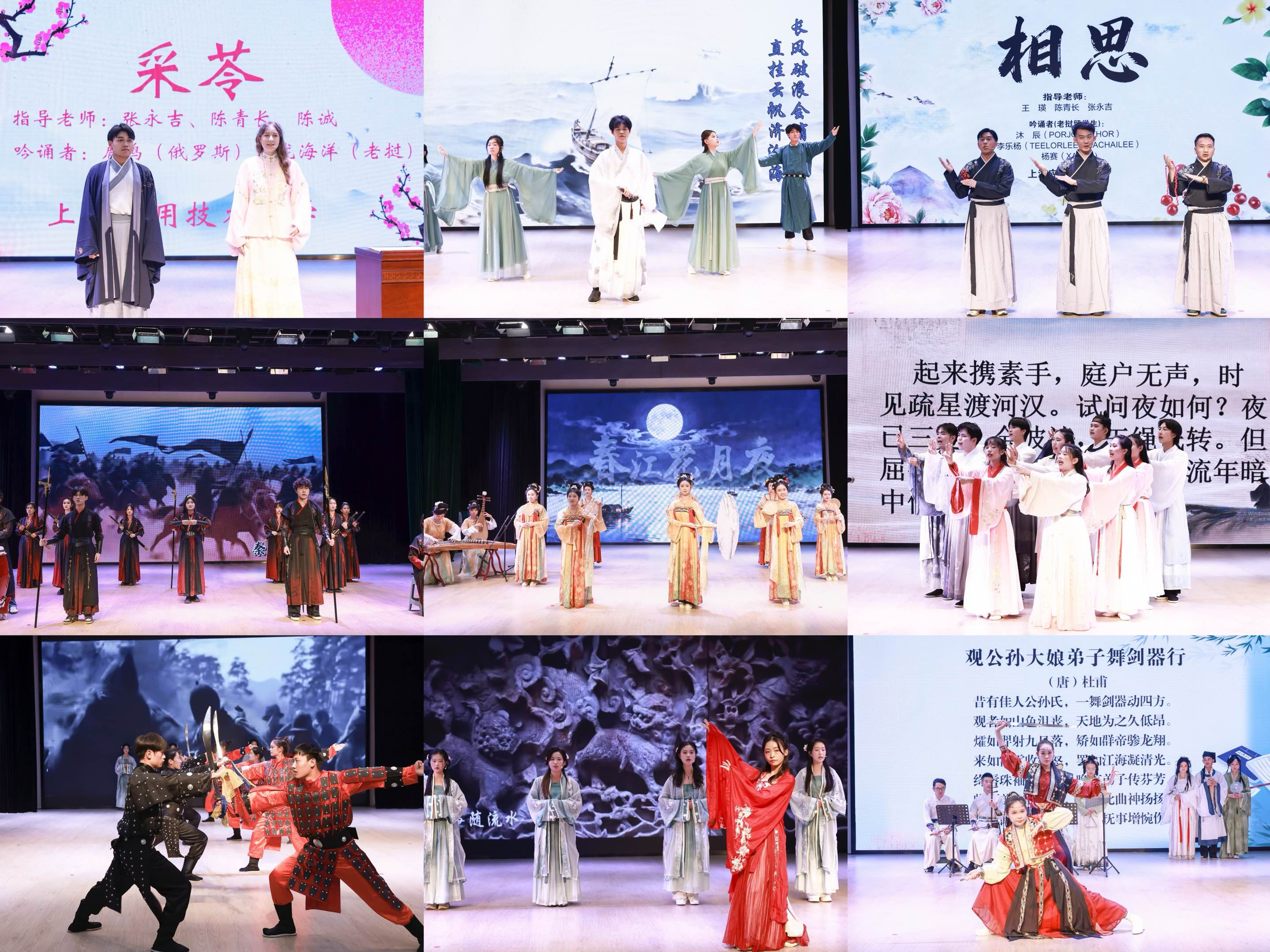 来自各国的参赛选手分别在国风雅韵、江南春秋、古韵新声、千年词笔四个主题下进行吟诵表演。评委专家分组进行点评。