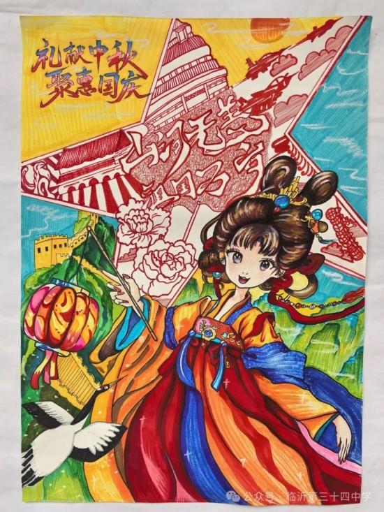 鲁网11月15日讯为庆祝中华人民共和国成立76周年暨传统中秋佳节,临沂第三十四中学举办了“月满华诞,双节同辉”主题美术书画比赛。