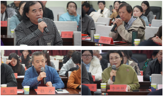 在嘉宾分享环节,多位艺术家、服装行业代表、院校学者、企业家及专委会代表围绕“书画艺术与服饰美学融合”展开深入交流。艺术家代表刘方明、郑国定、杜石、李艳艳、郑光涛等从艺术创作角度提出融合建议;服装行业代表乔西清、孟奇等分享了纺织面料与艺术结合的实践经验;来自临沂大学、临沂职业学院、临沂科技职业学院的学者则从文化遗产、电商营销、创新创业等角度建言献策;企业家代表张忠琴、杨慧、孙彩丽、等从市场、传播等层面提出落地思路。