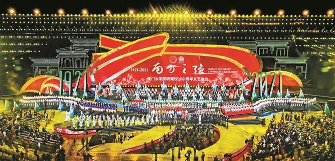 2021年4月6日晚,厦大百年校庆晚会揭开面纱,陈嘉庚扮演者从建南大会堂走向上弦场,串联百年校史。与其说当晚举行的是晚会,不如 说它是一部叙述厦大百年历程的史诗。