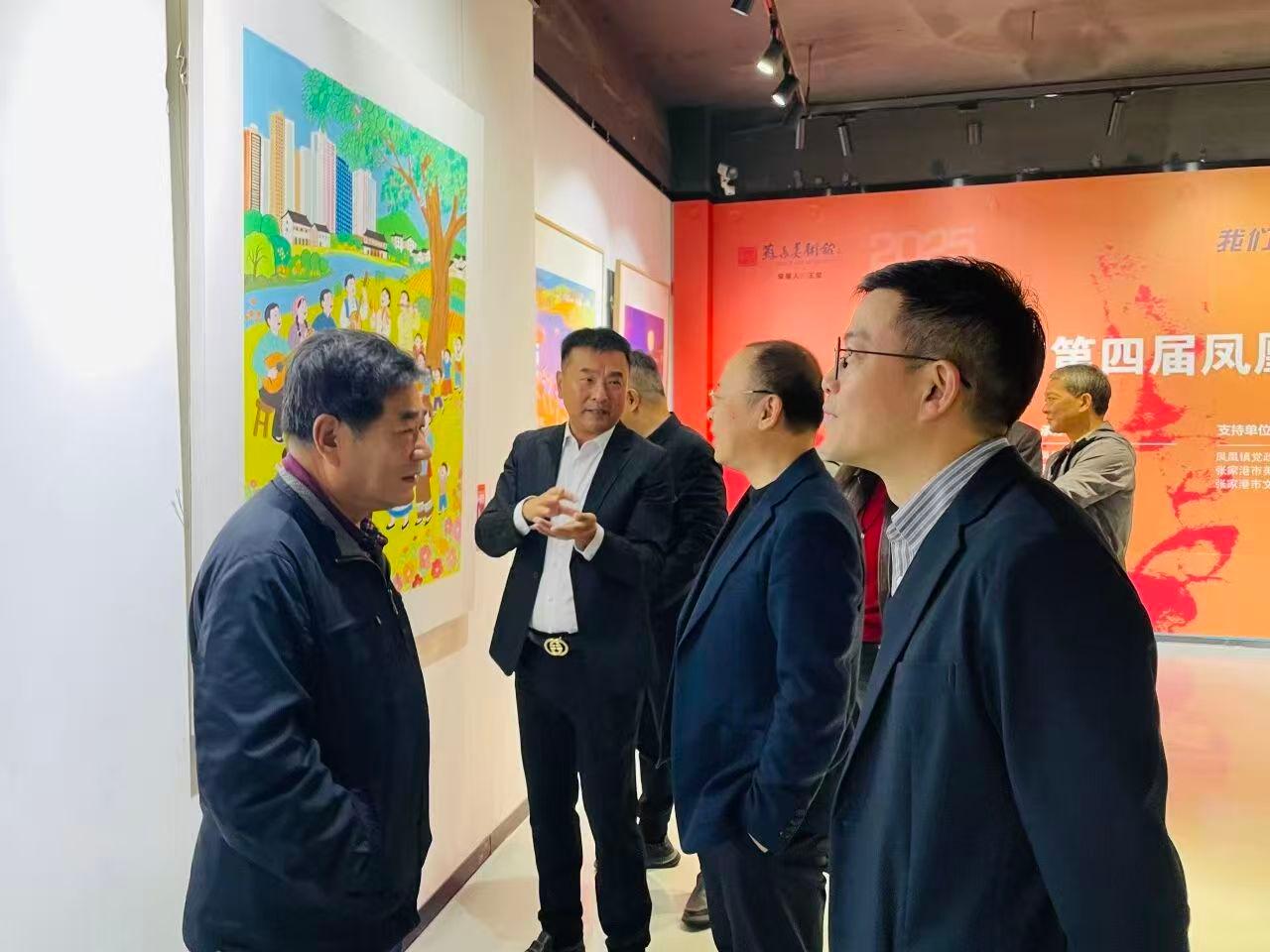 展厅内,记者看到《印象豆腐》《乡村美景入画来》《我在凤凰等你》《水蜜桃熟了》等作品有序陈列,艳丽色彩与质朴笔触交织,将农村巨变、民俗民风与新时代精神风貌娓娓道来。“在画里看到了我们的日常生活,就像把日子搬进了画卷,太亲切了!”凤凰镇群众吴大姐的感慨道出了观展者的心声。