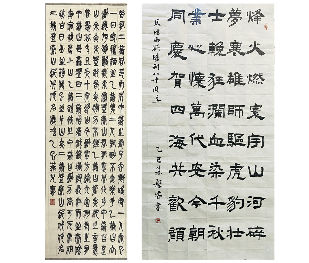学生组表现尤为亮眼,共斩获10项荣誉。其中,孙菲儿同学的书法作品《二翁登泰山》、朱慜睿同学的书法作品《抗战胜利八十春寰宇欢歌祭英魂》在激烈竞争中脱颖而出,双双荣获一等奖。孙菲儿同学的作品笔力遒劲、章法严谨,将《二翁登泰山》的坚韧精神通过笔墨传递;朱慜睿同学的作品则紧扣时代主题,以饱满的情感、大气的笔触歌颂抗战胜利的辉煌成就,致敬革命先烈,展现了青年学子的家国情怀与文化自信。两件作品的指导老师张怡芳老师,在教学中注重因材施教,悉心指导学生打磨技艺、挖掘创作主题,为学生的成长提供了有力支撑。