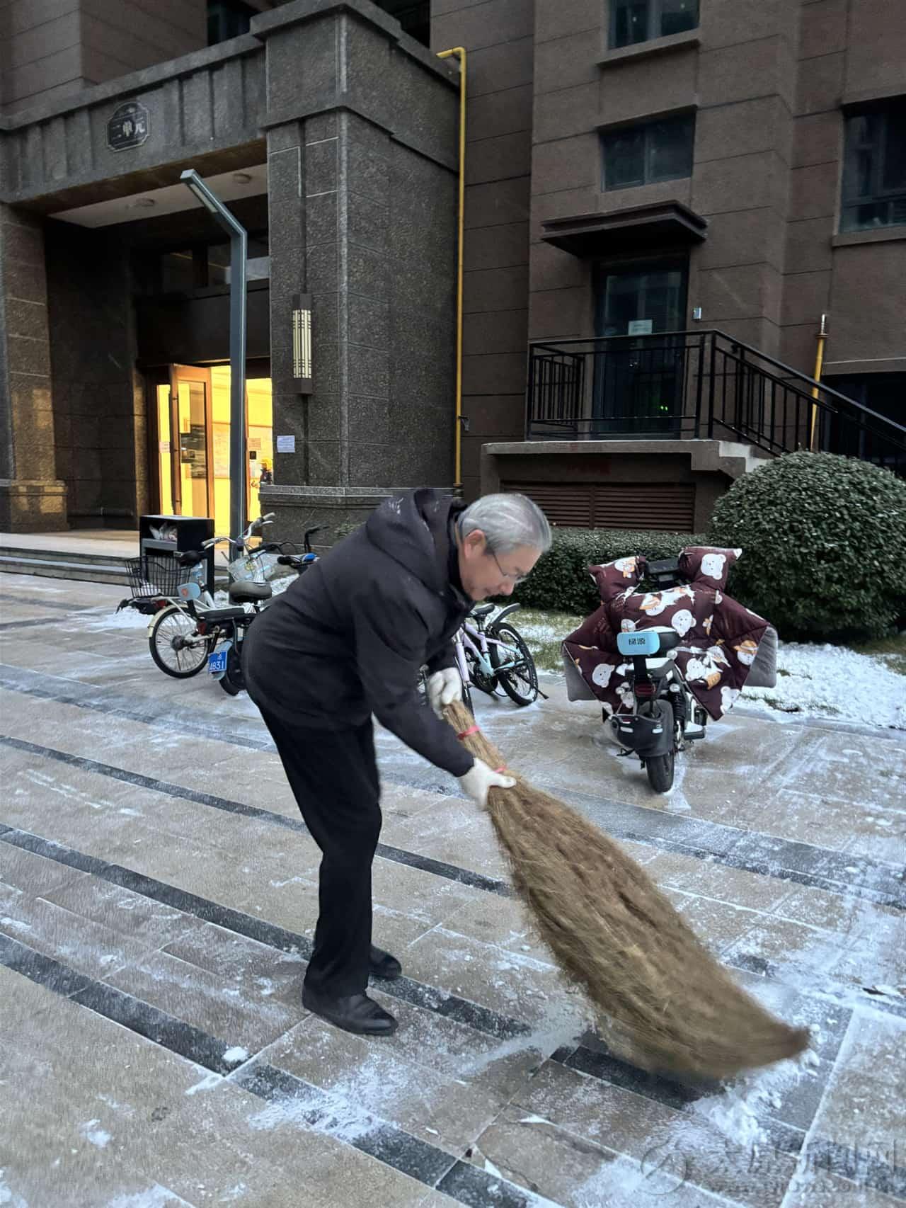 “趁早上雪没被踩实,扫起来利索,大家出门也安全。”这个自发清雪的举动,尹世宏一直坚持下来。他的默默付出,被邻居们看在眼里,也暖在心里。今年,滨体社区网格员郭文媛在社区网格群发布清雪志愿者招募倡议,尹世宏和不少居民主动报名。
