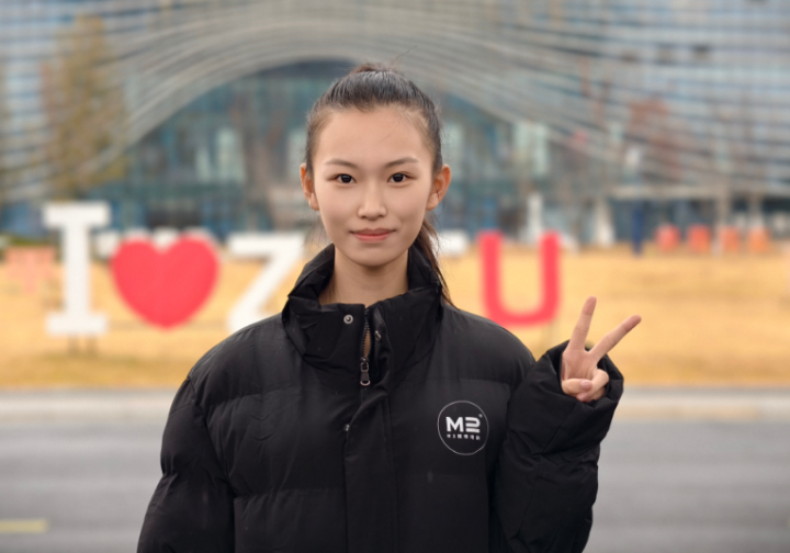 “我是一个人从宁波坐高铁来杭州考试,从小就特别热爱舞台,爸爸妈妈也很支持我。服装表演虽然不是我的主修,但也很希望这门能够考好,目标是冲一冲北京电影学院,回去准备首考后,也要针对性练习北电的校考内容,继续加油。”