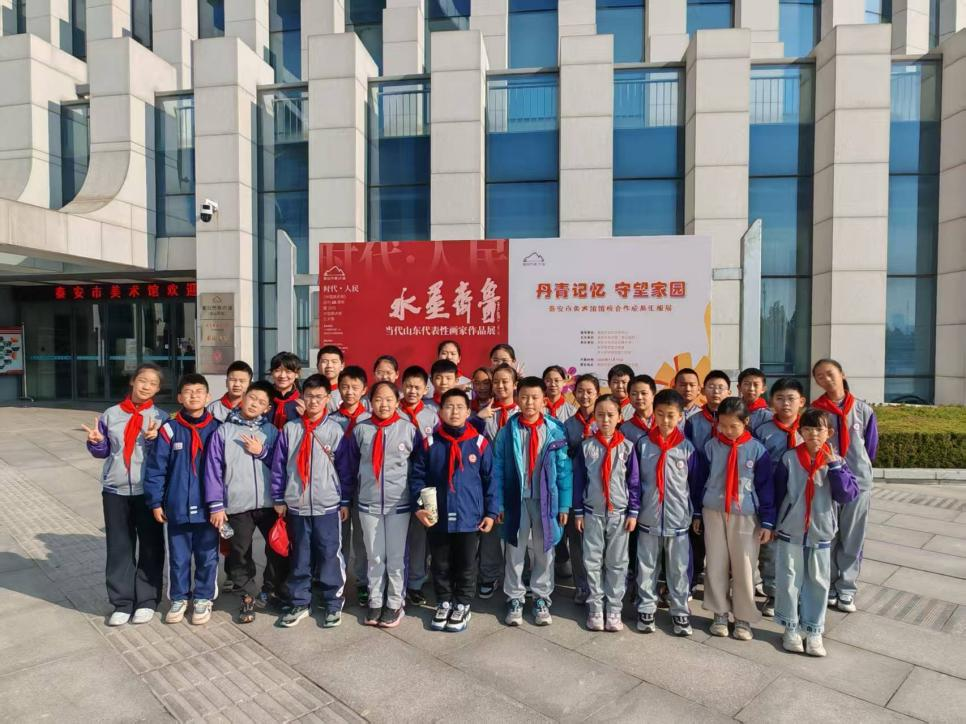 队员们参观了“丹青记忆,守望家园”泰安市美术馆馆校合作成果汇报展,在这里欣赏了同班同学的获奖作品,为身边同学的艺术才华感到欣喜与自豪。随后,大家又参加了“水墨齐鲁”——当代山东代表性画家作品展开幕式。