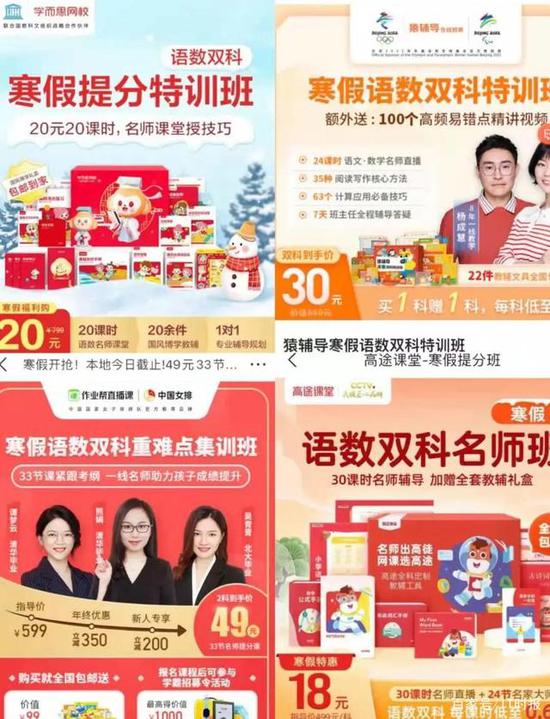 当然,这只是前奏,最好还是掏几千元报“寒春班”的正价套餐,暑假一起报就更好了,报的越多优惠力度就越大,而且还能赠送各种期末冲刺课、阅读写作提升课、速算技巧课等,大大击中了濒临崩溃的家长的心。
