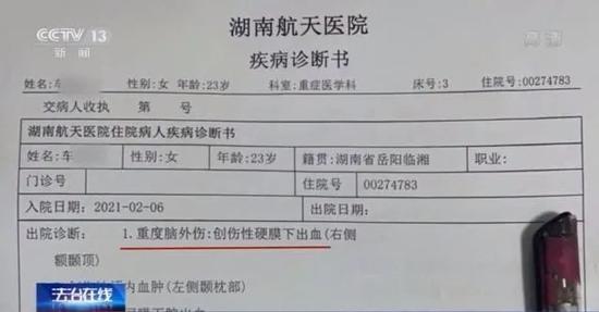 湖南航天医院神经外科医生梅小杰表示,车女士伤势比较严重,摔伤过程中可能出现不止一次的碰撞。