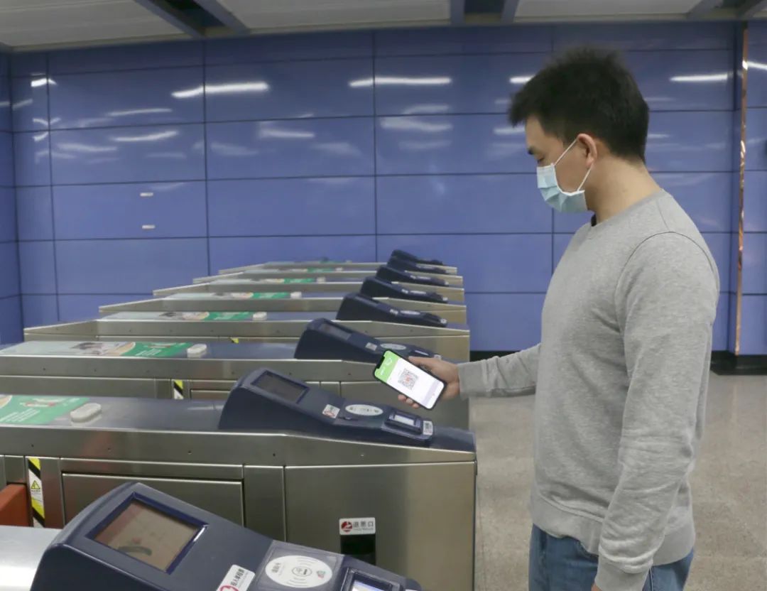 3) 乘客进出闸机前可将手机乘车二维码,对准身体右侧进/出站闸机的二维码扫描区。