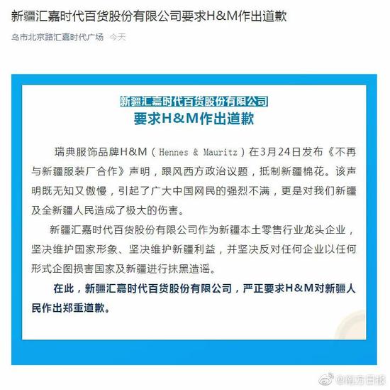原标题:对比强烈!H&M广告牌被拆,另一家的声明被点赞……