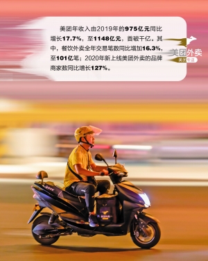 作为国内互联网巨头之一,美团(003690.HK)公布了2020年业绩。年报显示,美团总收入由2019年的975亿元同比增长17.7%,至1148亿元,首破千亿。其中,餐饮外卖全年交易笔数同比增加16.3%,至101亿笔;此外,2020年新上线美团外卖的品牌商家数同比增长127%。