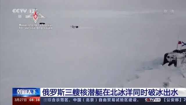 震撼画面!俄三艘核潜艇首次在北冰洋同时破冰出水