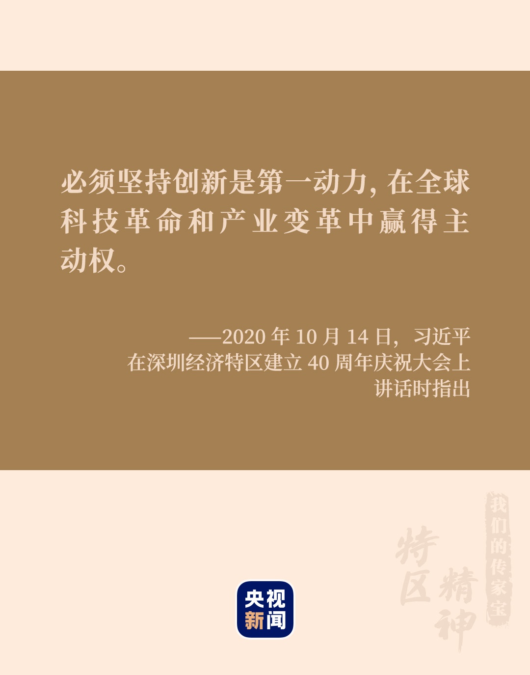 坚持创新是第一动力,是建设好经济特区的宝贵经验之一。