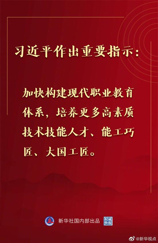 原标题:权威快报|习近平:加快构建现代职业教育体系 培养更多高素质技术技能人才能工巧匠大国工匠
