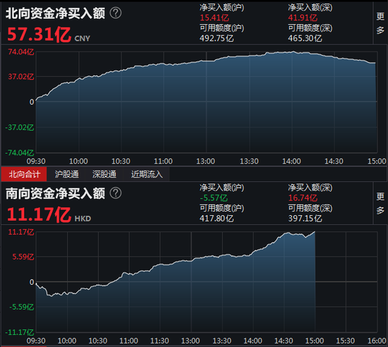 4月14日消息,截至沪深股市收盘,北向资金净买入57.31亿元,为连续3日净买入;其中沪股通净买入15.41亿元,深股通净买入41.91亿元。