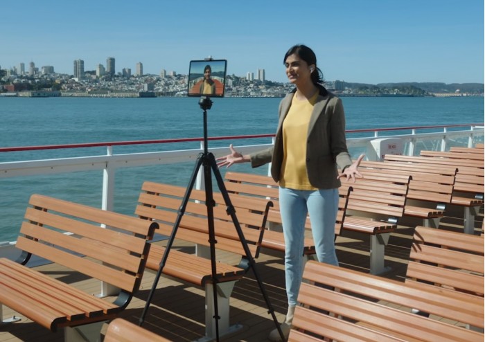 苹果对前置摄像头进行了更新,配合机器识别技术,可实现人物居中功能。