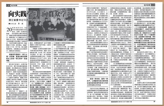 我的想法得到了姬斌同志的大力支持。于是,我加班加点,很快草拟出了两篇文章。我把两篇稿子送给习近平同志审阅,他审看后,稿子传到编辑部,很快在2000年第36期和第39期刊发。海内外多家媒体纷纷转载,产生了很大社会反响。