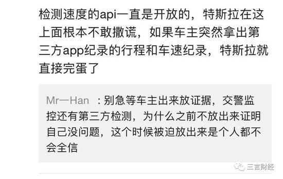 网友称,检测速度api一直是开放的,因此特斯拉在这方面不敢撒谎;