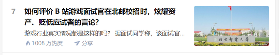 这几天,网传B站游戏部门到北京邮电大学招聘,有面试官说出了一系列令人迷惑的言论。此事在北邮内部的论坛上发酵,并在一些招聘平台、问答社区流传。