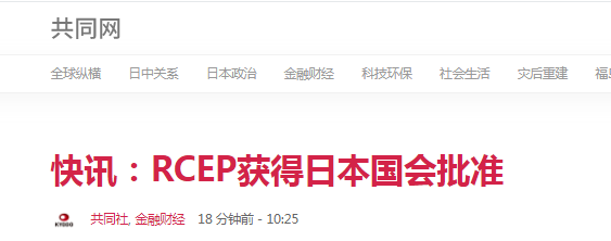 原标题:快讯!日媒:RCEP获日本国会批准