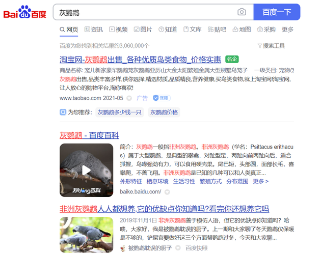 不过,目前百度搜索国家保护动物的名称,页面广告链接标题有“出售”“多少钱一只”“价格”等,还有一些自媒体的“养”鸟介绍,这会对用户产生错误引导。