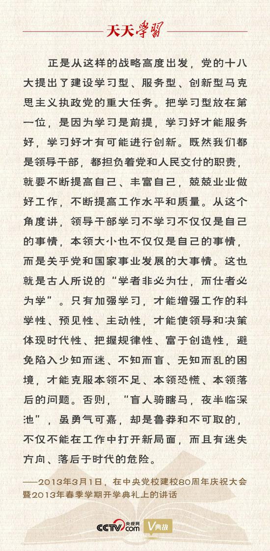 2013年3月1日,在中央党校建校80周年庆祝大会暨2013年春季学期开学典礼上,习近平总书记站在全局和战略高度提出了一个新论断:中国共产党人依靠学习走到今天,也必然要依靠学习走向未来。这是中国共产党百年光辉历程和伟大实践的一条重要经验总结,深刻揭示了“中国共产党为什么能”的一个重要秘密所在。