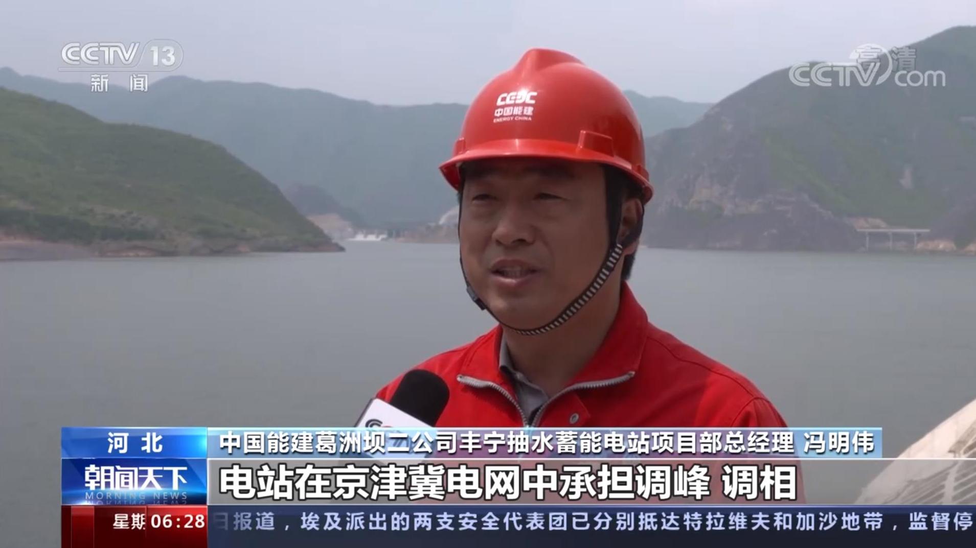 中国能建葛洲坝二公司丰宁抽水蓄能电站项目部总经理 冯明伟:电站在京津冀电网中承担调峰、调相、调频、系统稳定的任务,同时还能达到社会效益、经济效益,还有绿色环保效益。
