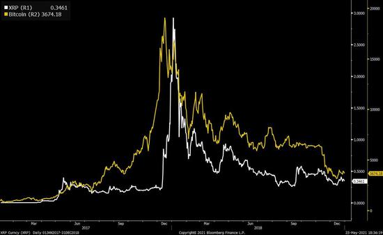 另一个重要的相似点是,两轮行情中,都是由比特币率先达到新高,然后带动其他山寨币出现暴涨。在上一个周期中,比特币在2017年12月达到新高,而其他货币在次年的1月才达到新高。例如,在比特币自高点开始下跌的几天后,瑞波币才达到新高。