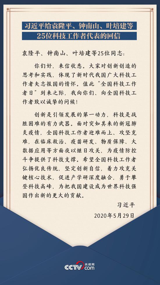 2020年5月29日,他们收到了习近平总书记的回信,总书记向他们以及全国科技工作者致以诚挚的问候。