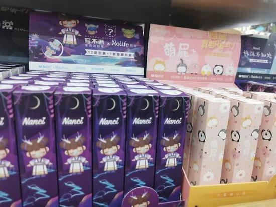 儿童节前夕,记者走访了北京多家文具店。在北京市朝阳区三元西桥附近的一家文具店里,记者看到,五颜六色的文具盲盒占据了货架醒目位置,精美的外包装上印着柯南等卡通人物。