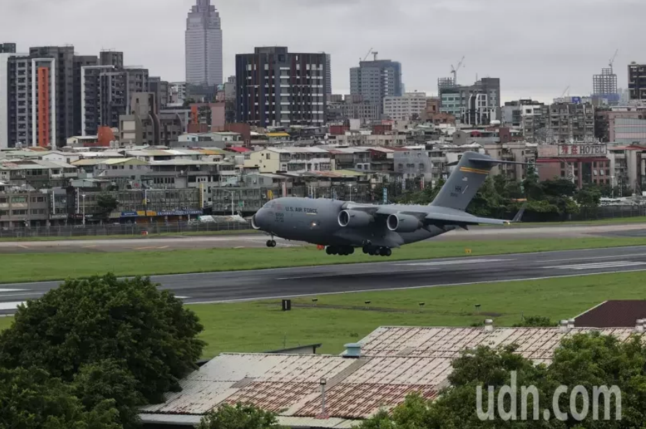 值得注意的是,此次访问团一行是搭乘C-17战略运输机从韩国乌山空军基地起飞,台媒称,这是美国会议员首次搭乘美空军C-17战略运输机飞抵台湾,也是松山机场首度有美军战略运输机到访。