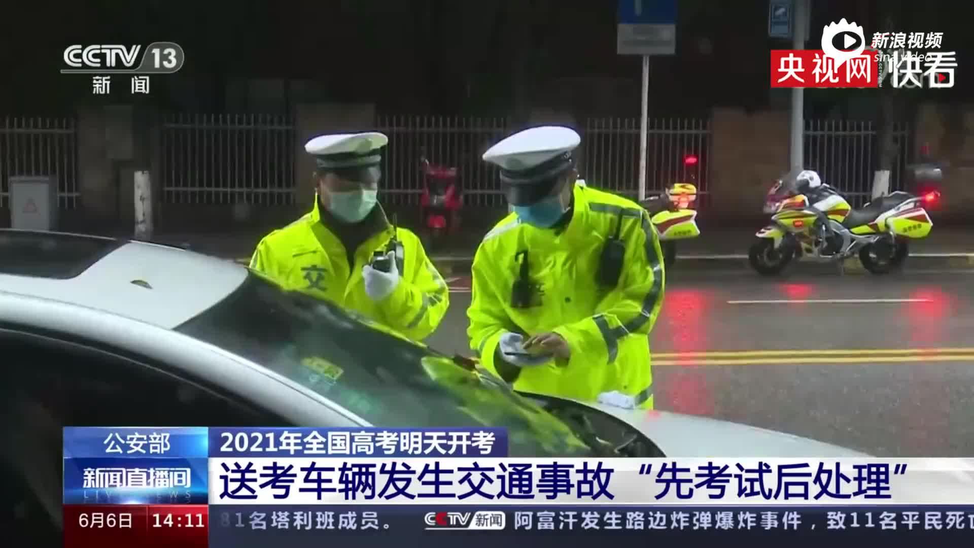 今天全国高考正式开始了,公安部交通管理局近日专题部署2021年高考交通安保工作,要求各地公安交管部门全力以赴保安全防事故。针对2021年全国高考的新形势新特点,公安部交通管理局要求各地公安交管部门优化考点出入口设置和周边道路交通组织,便利送考。开辟临时停车场地和停车泊位,便利停放。对送考车辆发生的轻微交通违法行为,教育警告后及时放行。对发生交通事故的,按照“先考试后处理”的原则取证后先予放行,事后妥善处理。