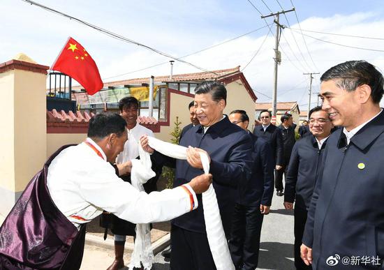8日下午,习近平总书记来到青海省海北藏族自治州刚察县,在青海湖仙女湾听取祁连山和青海湖生态环境保护等情况介绍,并实地察看青海湖环境综合治理、生物多样性保护工作成效。随后,习近平来到沙柳河镇果洛藏贡麻村,看望慰问藏族群众,走进藏族群众家中了解生产生活情况。(文字记者:张晓松、朱基钗;摄影记者:李学仁、谢环驰、燕雁、申宏)